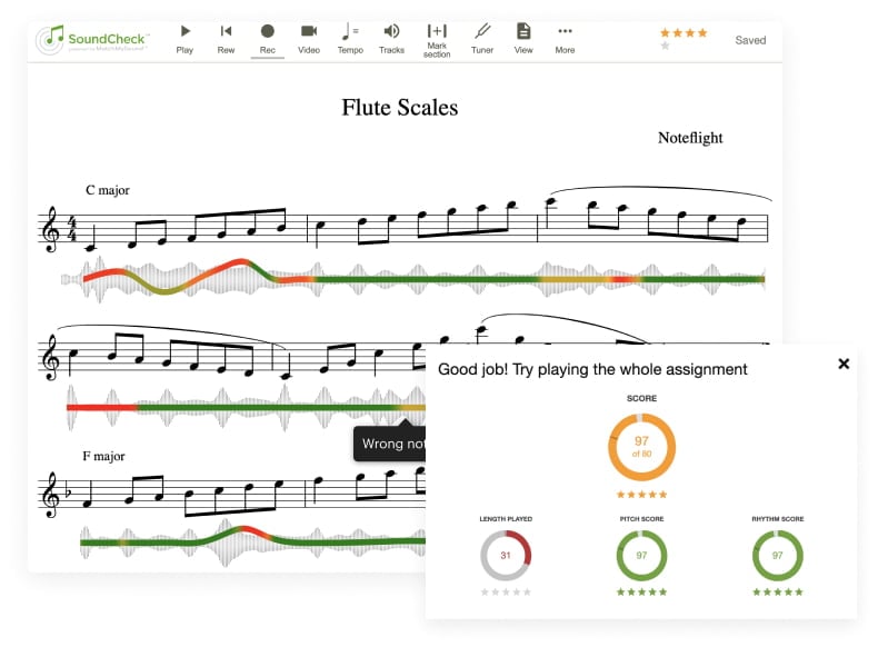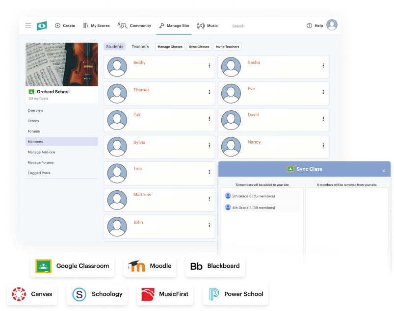 Noteflight Learn includes a comprehensive suite of music notation tools, composition templates for over 85 instruments, audio recording features, and more! Whether you're composing, editing, importing, playing, or sharing, enjoy seamless creation and collaboration for teachers and students at any level.